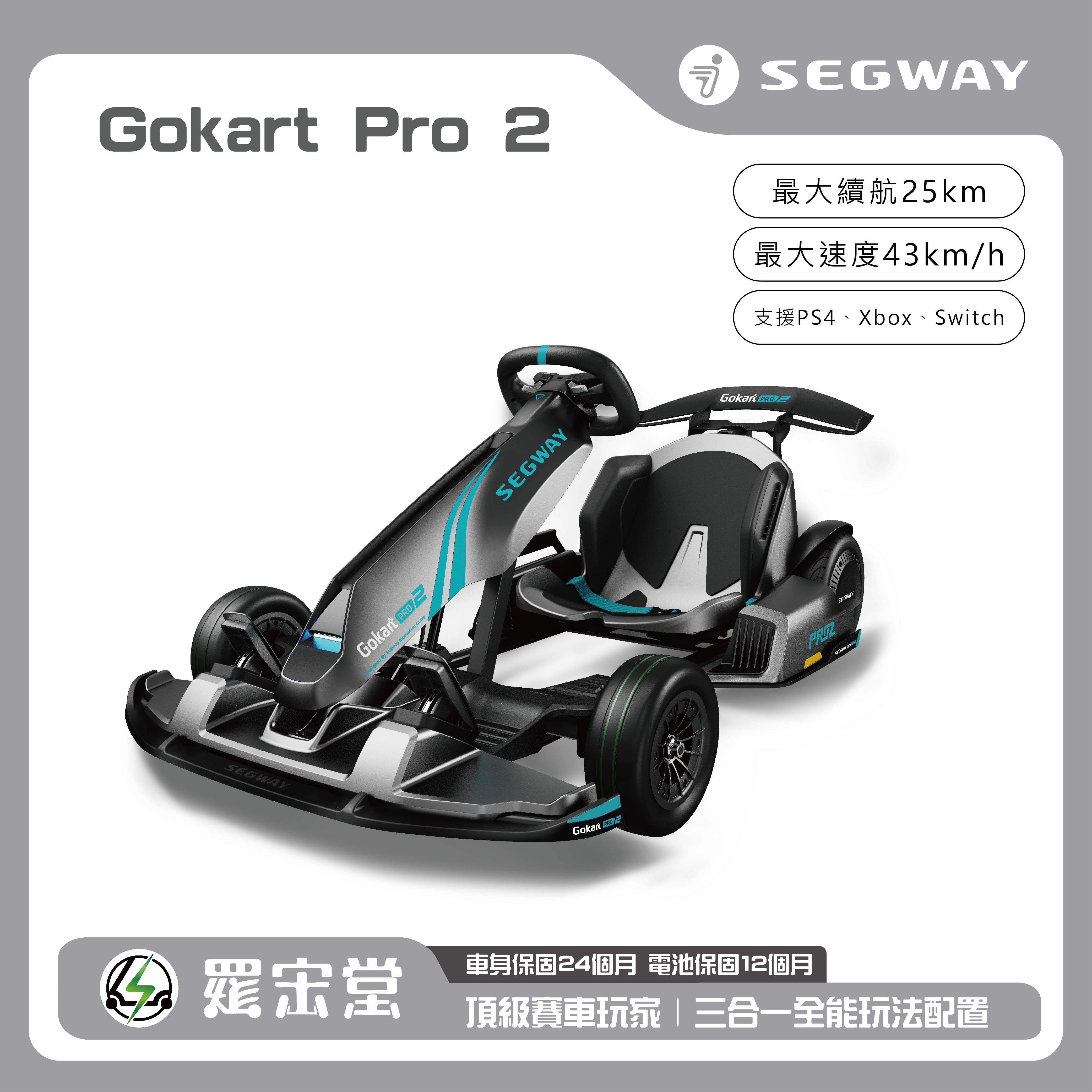 SEGWAY 最新旗艦卡丁車 Gokart Pro 2,小朋友的大玩具,老頑童的小賽車,迷你小賽車點燃速度與激情的夢想,超低底盤超短軸距的貼地飛行彎道精靈,賽車桶椅與專業擾流導板逼近方程式賽車真實感受,機械手剎輕鬆完成帥氣甩尾飄移過彎,極速43km/h和96N.m扭矩強勁貼背感十足,最大加速度1.02G搭配4800W風冷電機,超高顏質專業賽車外觀設計吸睛全場目光焦點!續航25km車身可調式設計,高強度鋼製車體結構更堅實安全保障,二代仿真引擎聲效、手動換檔撥片設計,逼真體驗油車時境,適配多款賽車遊戲,全方位震動反饋和方向盤自回正,升級多功能電子彩屏,加厚舒適坐墊,沉浸式遊戲體驗讓您在家就能玩賽車。臺灣總代理原廠公司貨,售後品質有保障,大人小孩與賽車夢想家的最愛!